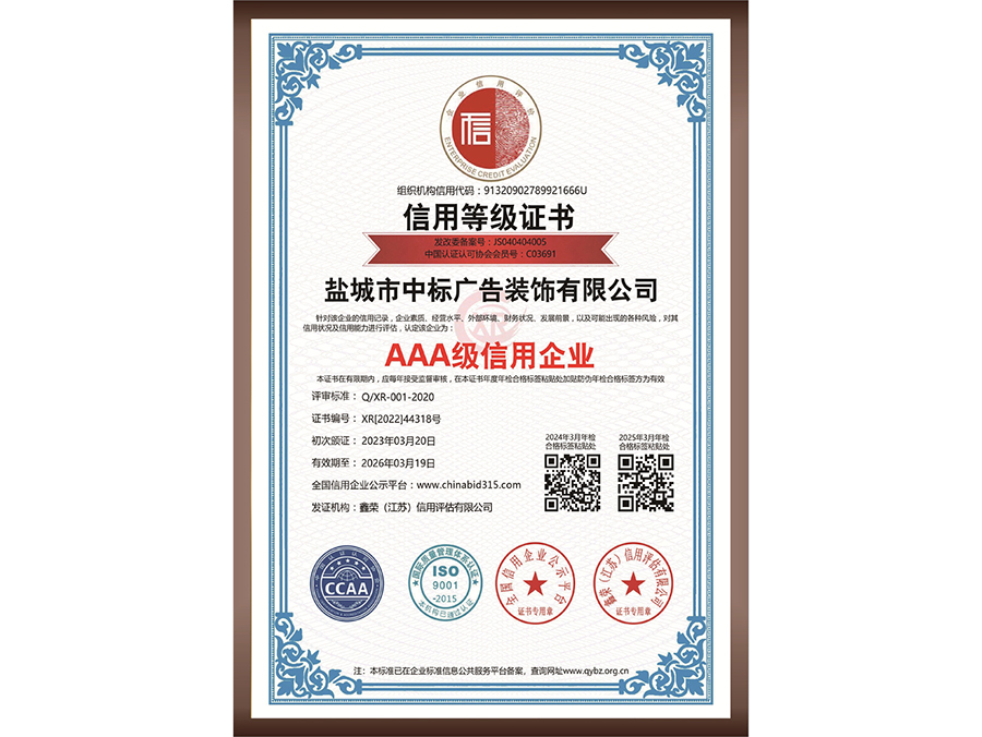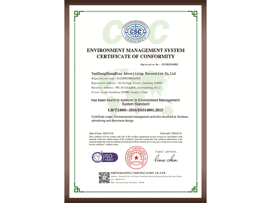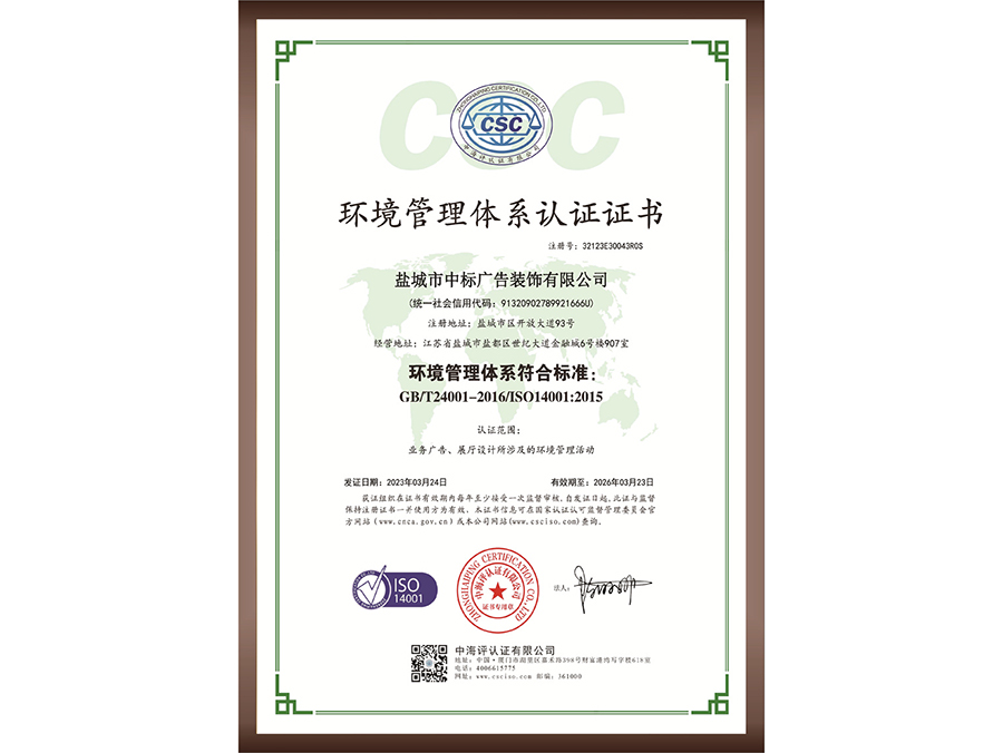 環(huán)境管理體系認證證書
