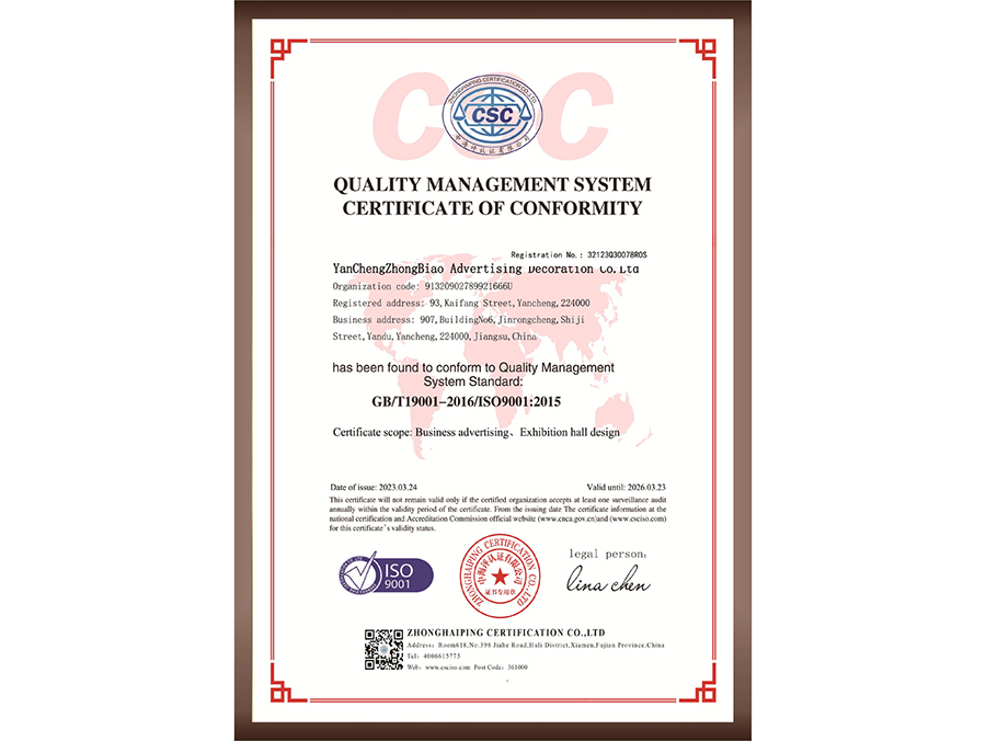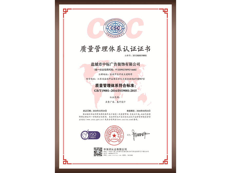 質(zhì)量管理體系認證證書