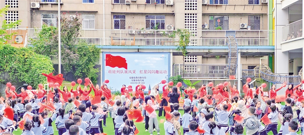9月30日,安康市幼兒園舉辦“萌娃列隊(duì)展風(fēng)采 紅星閃閃趣運(yùn)動(dòng)”國慶主題活動(dòng)。 李生珍 攝