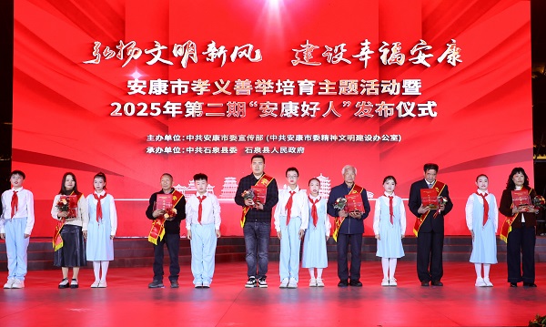 本次活動(dòng)以“弘揚(yáng)文明新風(fēng) 建設(shè)幸福安康”為主題,由市委宣傳部主辦、石泉縣委和縣政府承辦,旨在深入學(xué)習(xí)貫徹黨的二十屆四中全會(huì)精神,扎實(shí)推進(jìn)崇德向上幸福安康建設(shè);顒(dòng)現(xiàn)場(chǎng),通過(guò)播放典型人物短片、現(xiàn)場(chǎng)互動(dòng)訪談等形式,生動(dòng)再現(xiàn)了陳登發(fā)、高虎、黃壽琴等好人代表的感人事跡。市級(jí)領(lǐng)導(dǎo)及“中國(guó)好人”“陜西好人”等先進(jìn)典型代表為28名新入選的“安康好人”頒發(fā)紀(jì)念證書。活動(dòng)現(xiàn)場(chǎng)同時(shí)發(fā)布了2025年安康市“新時(shí)代好少年”名單,24名青少年獲得殊榮。