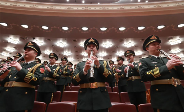 3月10日,中國(guó)人民政治協(xié)商會(huì)議第十三屆全國(guó)委員會(huì)第五次會(huì)議在北京人民大會(huì)堂舉行閉幕會(huì)。這是軍樂團(tuán)在演奏。新華社記者 盧燁 攝