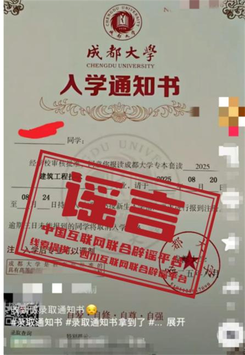 教育部多次提醒,部分機(jī)構(gòu)和個人打著普通高等學(xué)歷教育幌子,實(shí)際卻為自考助學(xué)、網(wǎng)絡(luò)教育等其他教育形式,或進(jìn)行虛假宣傳。如未通過高考招生錄取獲得正式通知書,無法注冊普通高校正式學(xué)籍,也無法取得普通高等學(xué)校學(xué)歷證書。考生及家長應(yīng)通過正規(guī)渠道核驗(yàn)錄取信息,嚴(yán)格保護(hù)個人信息,防止被不法分子利用。(來源:四川互聯(lián)網(wǎng)舉報(bào)辟謠平臺、成都網(wǎng)絡(luò)辟謠)