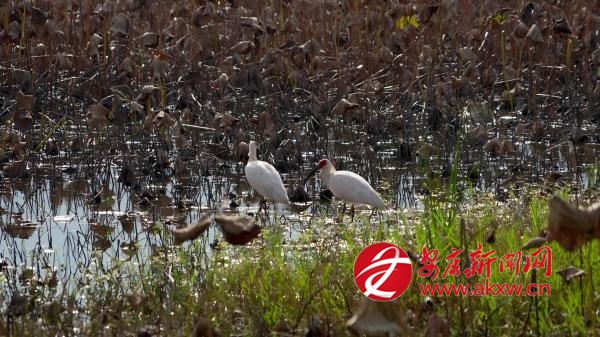 近日,漢陰縣雙乳鎮(zhèn)千畝荷塘再次迎來朱鹮群,潔白的羽毛與艷紅頭冠在秋日陽光下格外靈動,一派安逸自在的景象,繪就人與自然和諧共生的生動畫卷。(通訊員 黃智發(fā))anP安康新聞網(wǎng)